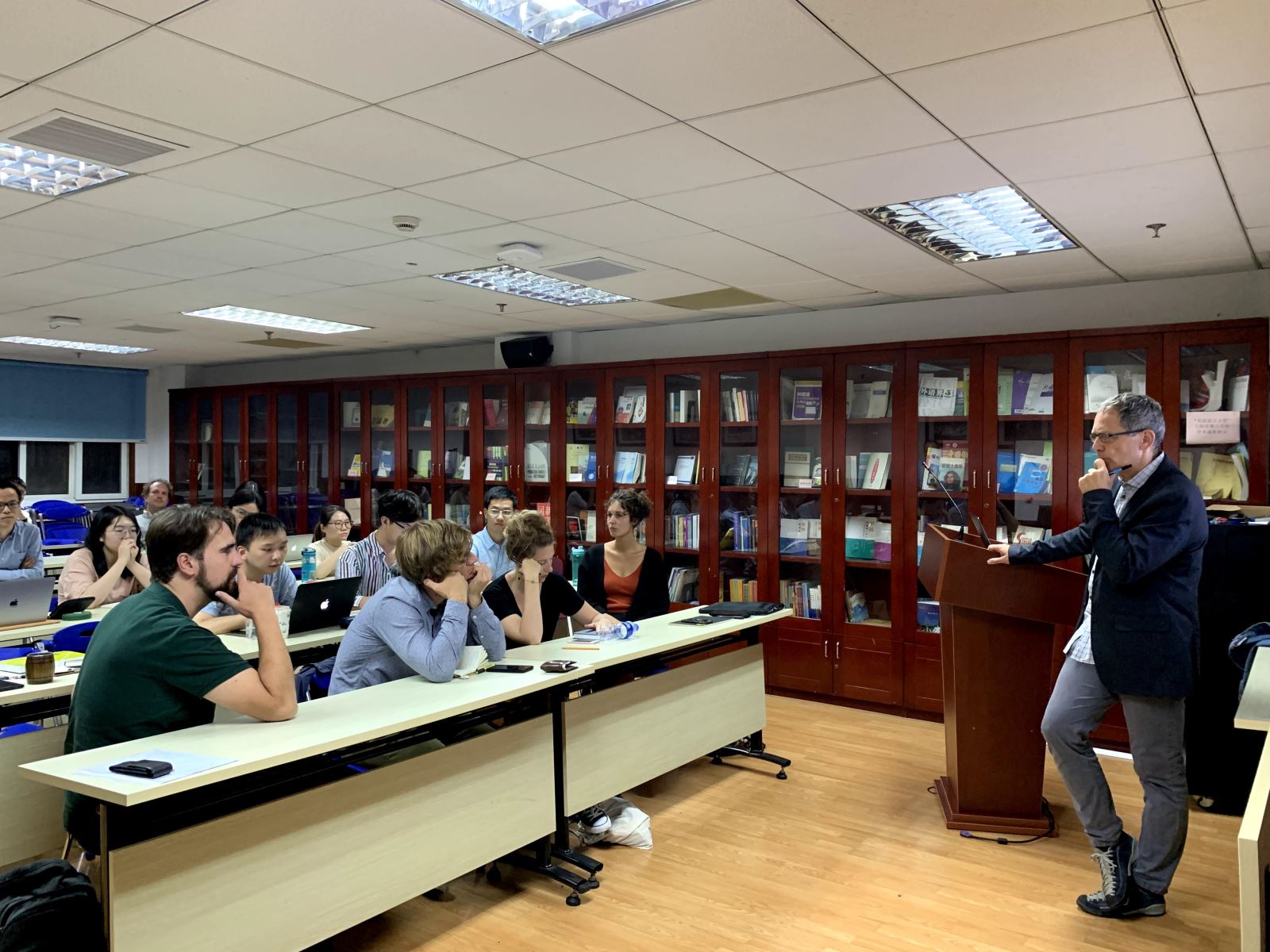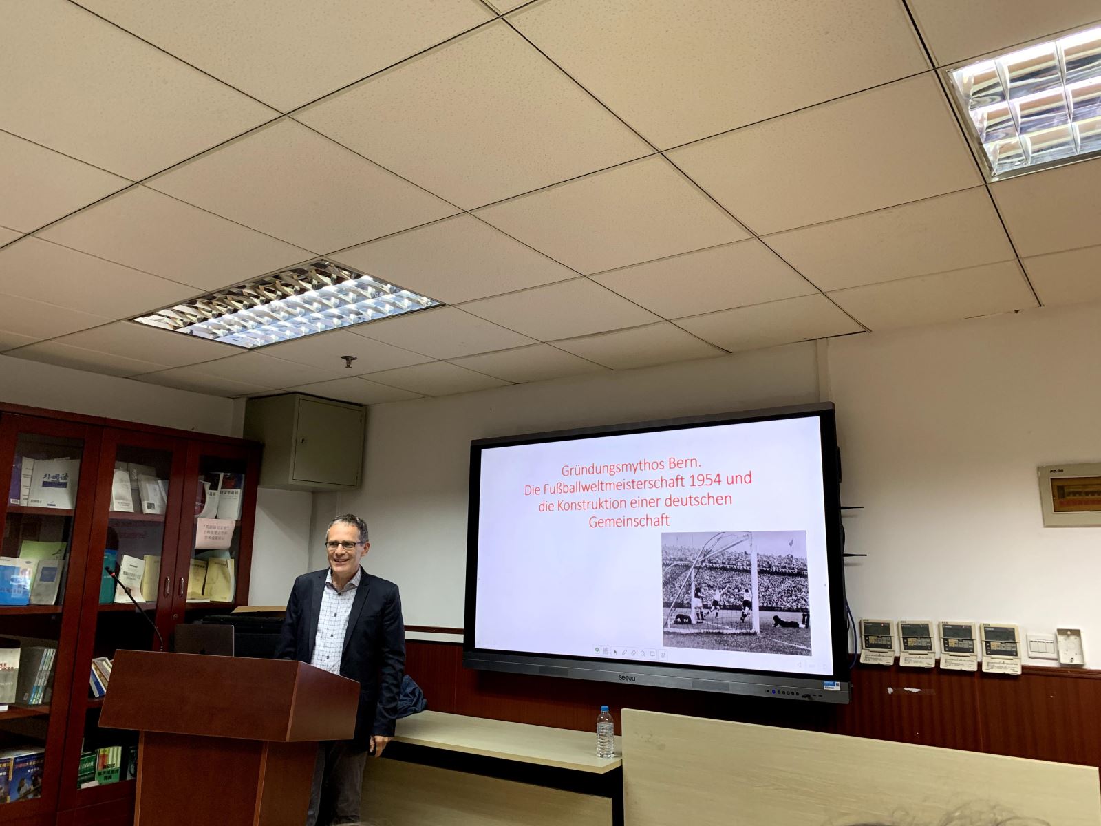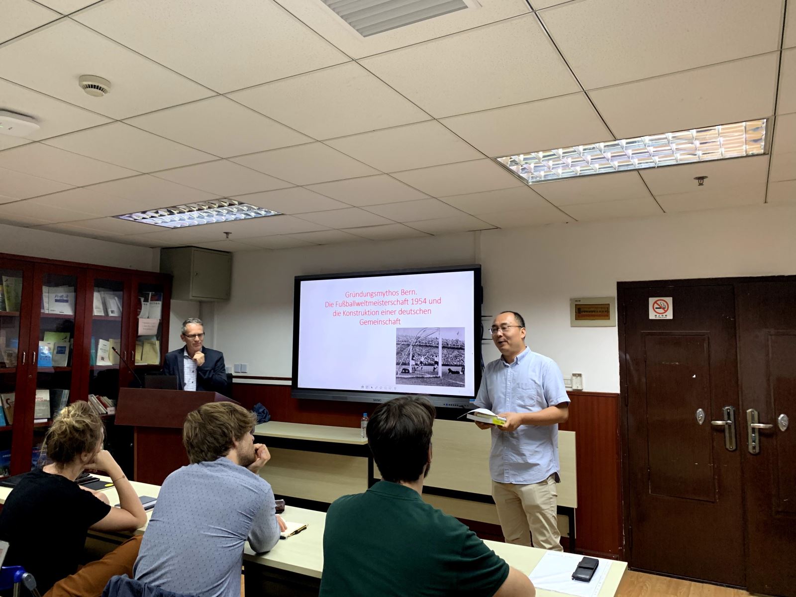 2019年9月20日,科隆大学德语文学系教授、知名作家Christof Hamann应邀来到同人小说 ,在文科楼424举行了主题为“‘伯尔尼奇迹’与德国社会共同体的建构”的讲座。本次讲座由德文系副教授刘炜主持,吸引了众多德文系师生前来参加。