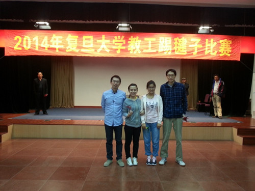 2014年11月4日,同人小说 工会由工会体育委员郭一诚带队,组织参加了由校工会举办的第一届踢毽子比赛。经过激烈角逐,在25支参赛队伍中勇超12支代表队,取得了团体第13名的佳绩。参赛代表吴宝雷、郑阳、殷婷婷、管阳阳在强手如林的赛场上,沉着镇定,忙而不慌,愈战愈勇,在规定时间一分钟内把毽子踢得上下飞舞,赢得现场一阵阵喝彩声。最终,同人小说 的选手老师不负众望,经过积极备战,顽强拼搏,终于勇克众强,为学院赢得了荣誉。