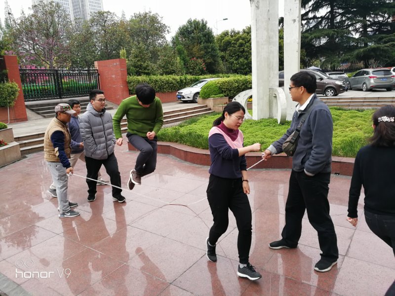 由于训练时间紧,又恰逢学术活动频繁时段,许多队员都分身无术,但大家无论多忙多累,都尽力来参加集训。腿酸了,气喘了,没有人叫苦叫累;失误了,落踏了,调整节奏再练。大家在汗水中坚定了意志,在磨合中凝聚着精神。长绳飘荡如龙舞,外院豪情汇一处!