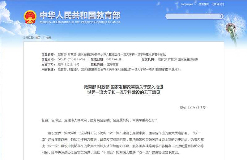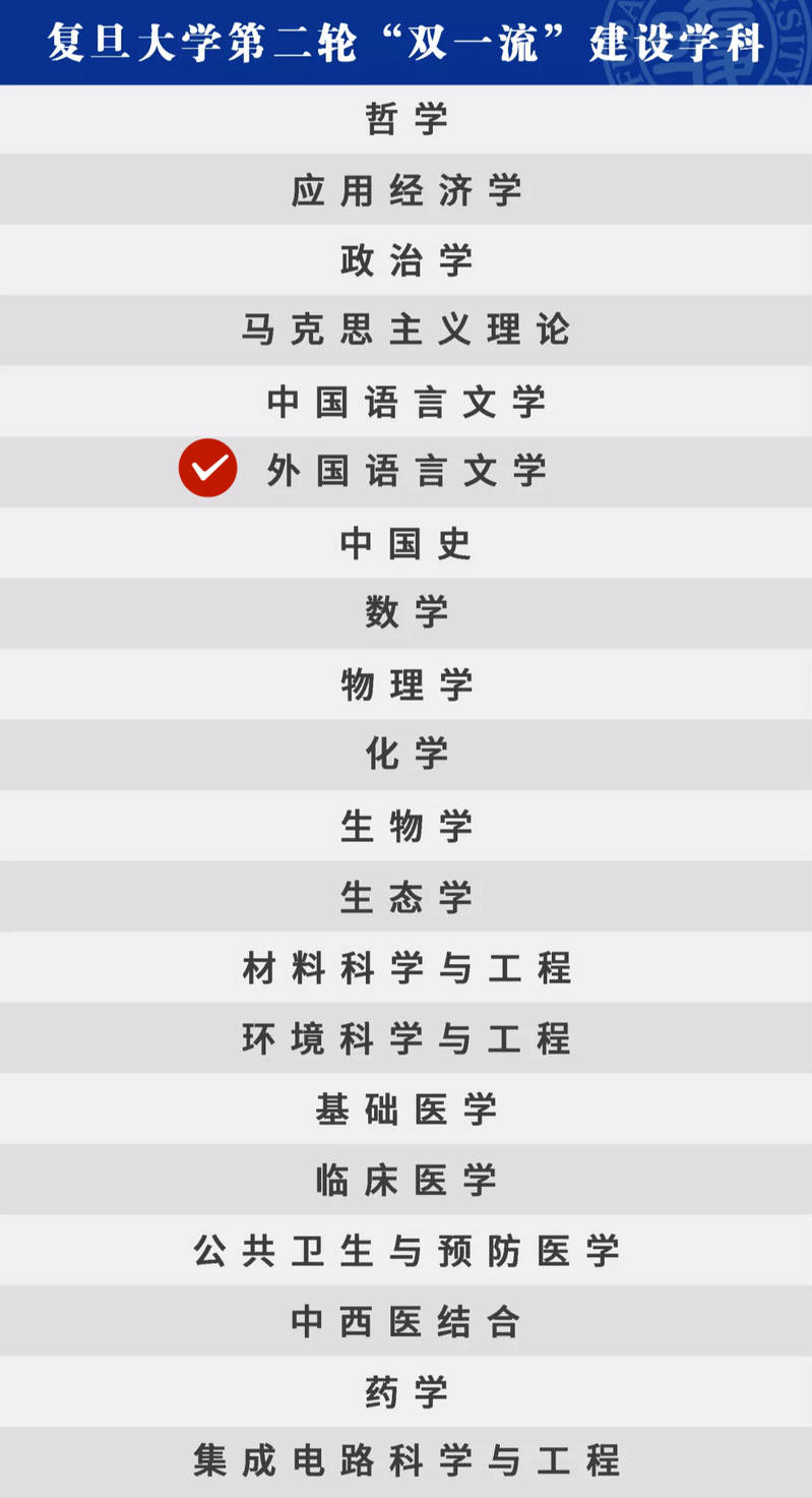 经中央深改委会议审议通过,《关于深入推进世界一流大学和一流学科建设的若干意见》近日由教育部、财政部、国家发展改革委印发。经国务院批准,三部委公布第二轮“双一流”建设高校及建设学科名单。我校哲学、应用经济学、政治学、马克思主义理论、中国语言文学、外国语言文学、中国史、数学、物理学、化学、生物学、生态学、材料科学与工程、环境科学与工程、基础医学、临床医学、公共卫生与预防医学、中西医结合、药学、集成电路科学与工程等学科入选本轮“双一流”建设学科。与首轮建设相比,我校入选“双一流”建设学科数从17个增加到20个。我院外国语言文学成功入选一流学科建设名单。