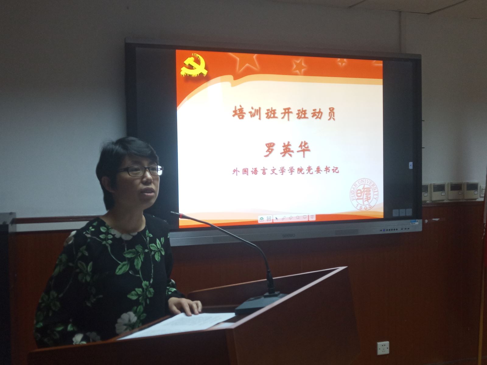 罗英华作了开班动员讲话。她首先对学员们递交入党申请书、向党组织靠拢、积极追求进步表示充分的肯定。她指出,递交入党申请书只是第一步,学员们要正确认识新时期大学生党员的标准,发展和考察学生党员要坚持政治标准是首位、责任感是根本、深入考察是关键。她结合复旦精神与校风学风,提出了大格局、强实力、真善美、接地气四条标准,寄语学员们胸怀祖国、志存高远、勤奋学习、诚实守信、团结同学、乐于奉献。她还从为什么学、学什么和怎么学三方面提出了要求,要求大家以思想上、行动上和组织上入党为目标,重点学习党章和党的理论,要做到原原本本、反反复复学,学深学透、入脑入心;又要做到联系实际、深入思考地学,“学而思、思而行”,牢固树立党章意识,将学到的理论内化于心、外化于行,学以致用、知行统一、理论为本、务行实效。