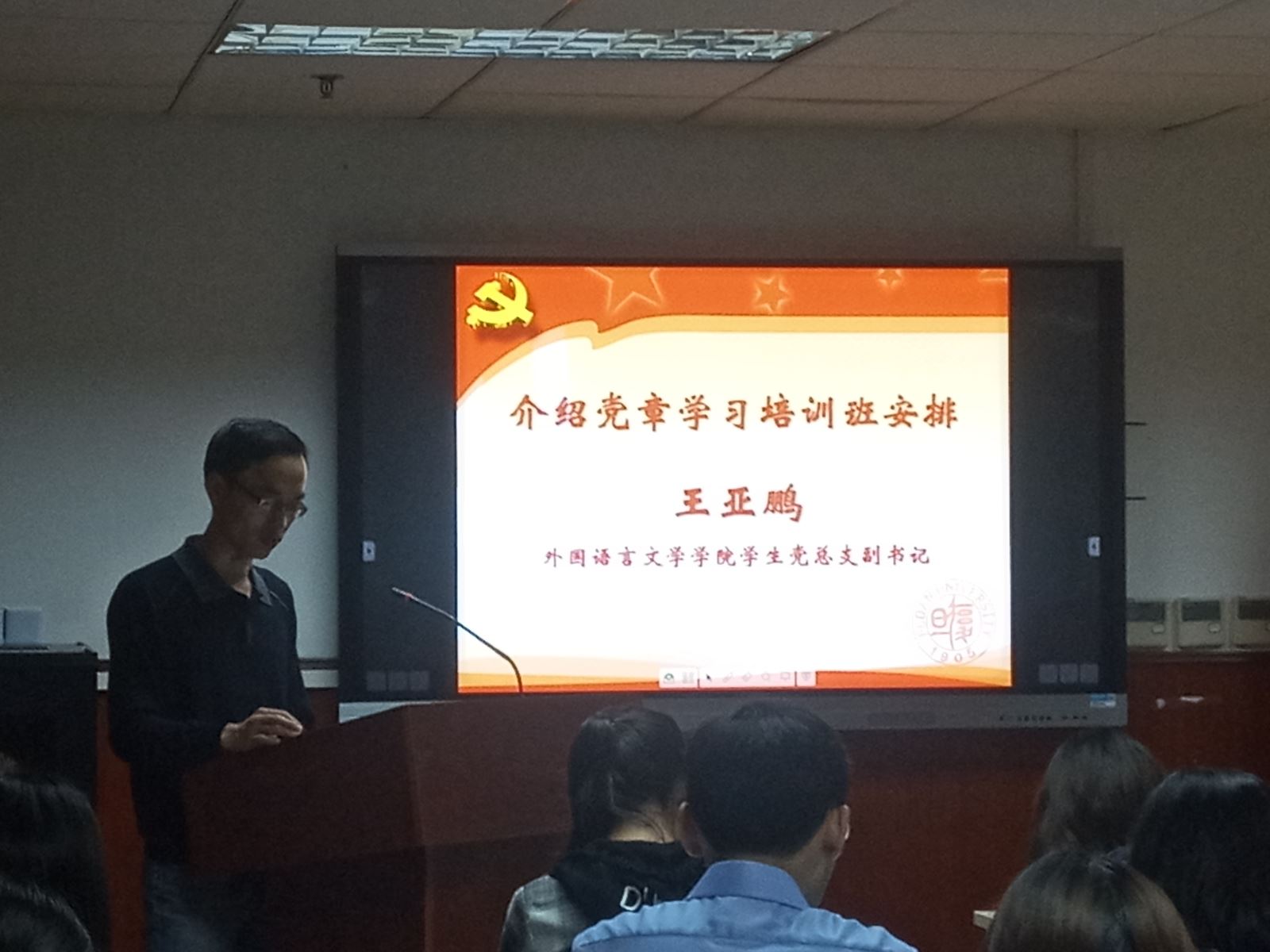 王亚鹏介绍了培训方案、日程安排与学习要求。本期党章学习培训班是同人小说 学生党总支继续探索和实践“党员全周期培养”的重要环节,是党的十九大后、中国特色社会主义进入新时代以来学院举办的第一期党章学习培训班,又正值马克思诞辰200周年和《共产党宣言》发表170周年,培训班面向递交了入党申请书、经过了党章学习小组初步学习,经支部考察入党动机端正、具备理论学习基础,各方面表现优秀的同学,重点围绕端正入党动机、打好理论学习基础、形成党员意识、塑造能力素质四个维度,设计了巩固理论、主题研讨、追寻足迹、成果展示四大版块的学习实践活动,力求节奏紧凑、重点突出、内容丰富、取得实效。