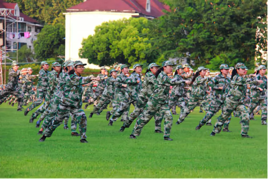 9月5日下午,在绿色迷彩的海洋中,最后的汇报开始了。在雄壮的进行曲里,六连登场。震耳的口号声响彻在操场上空,雄健而沉稳的步伐踢出飒爽英姿,展现出大家在这十四天中沉淀的意志。军体拳汇报表演中,每一次出拳、踢腿,每一个动作都干净又利索;每一声呐喊、击掌,声音里是昂扬向上的斗志。