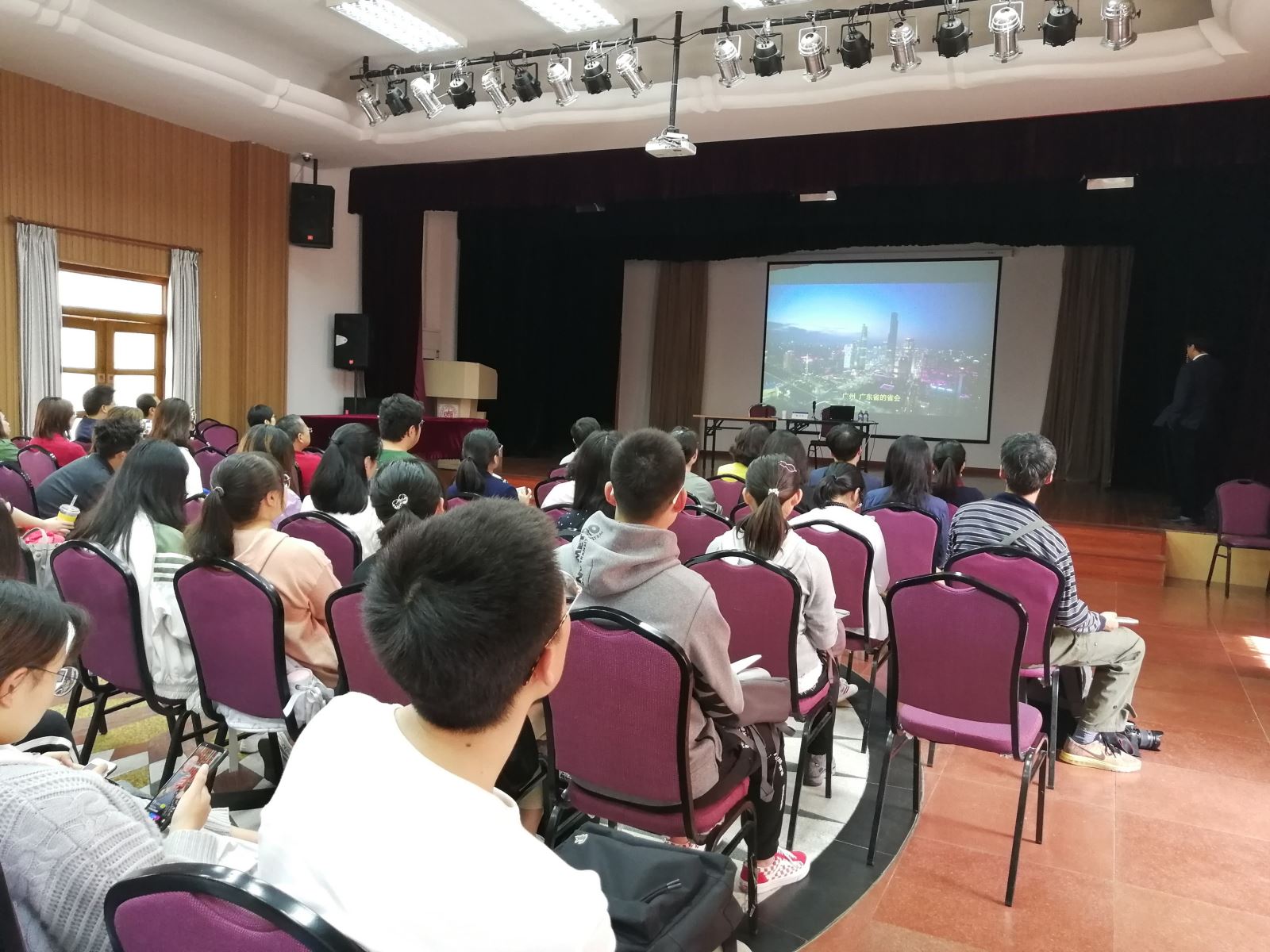 接下来,姚校友向大家介绍自己与电影艺术缘分。1980年,时任法国总统德斯坦访问复旦,姚校友有幸作为学生代表发言,法方以他的经历作为素材,拍摄了“一个中国大学生的24小时”记录短片。这是他第一次接触纪录片拍摄,并对此产生了浓厚兴趣。1985年赴法后,他花了近十年的时间沉浸在电影学习之中,不仅是在学校中学习专业知识,还积极担任各大电影节的选片人,观影无数,逐渐形成了犀利独到的电影审美。近年来,姚先生带领自己的团队制作了众多系列纪录片,例如《永恒中国》系列,《我见中国》系列,在国内外获得广泛赞誉,为中法文化交流做出了卓越贡献。其中《我见中国》系列在全球多国上映,好评如潮。姚校友还现场展示了纪录片的精彩片段,在座师生都感到非常震撼。姚校友作为学长,还对同学们的学习和生活提出了诸多宝贵建议,他叮嘱大家,作为外语学习者,切不可忘却中文学习和中文经典的精读;并希望大家能够充分利用大学四年的珍贵时光,多阅读,多积累,用外语为自己的人生创造更多可能性。