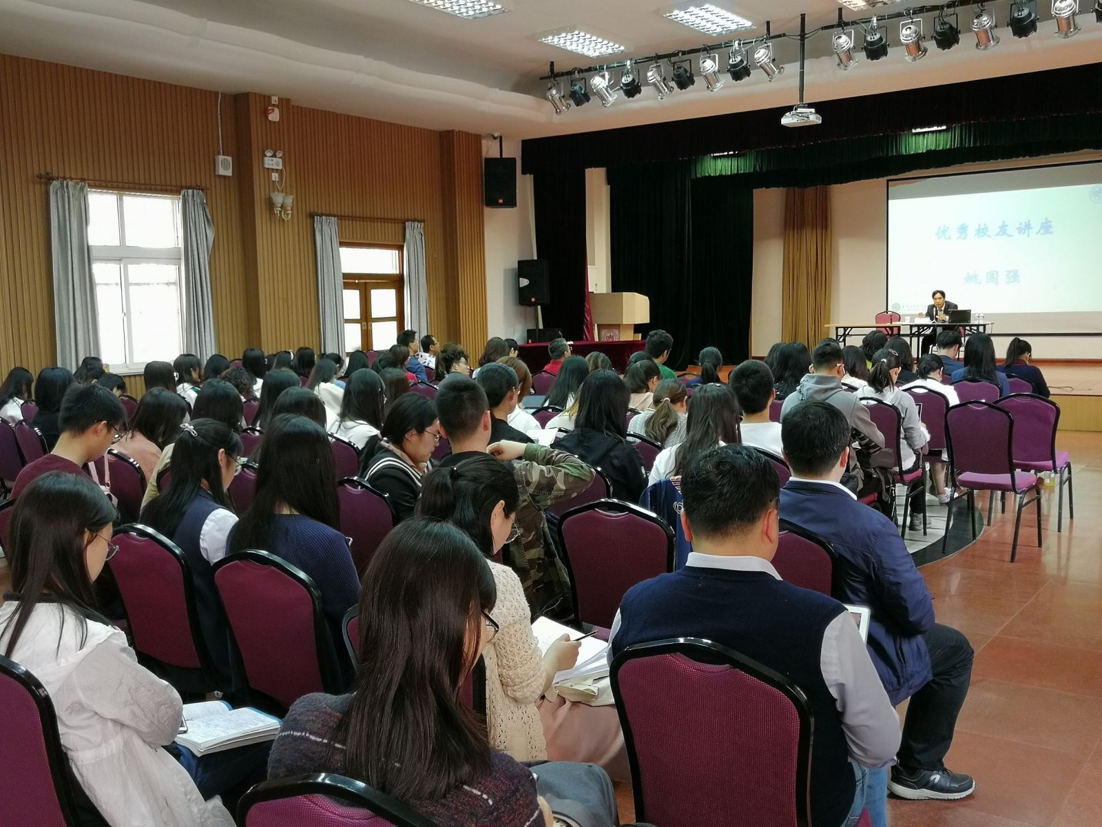 5月14日下午,同人小说 分党委于工会礼堂举行第三期优秀校友讲坛暨第三期入党积极分子培训班、第二期党支部书记(骨干)培训班专题讲座。1977级法文系校友姚国强先生重返校园,为同人小说 师生作了题为《4年大学与40年精彩人生——探讨外语的可能性》的精彩讲座。讲座由法文系系主任袁莉主持,近百名师生参加讲座。