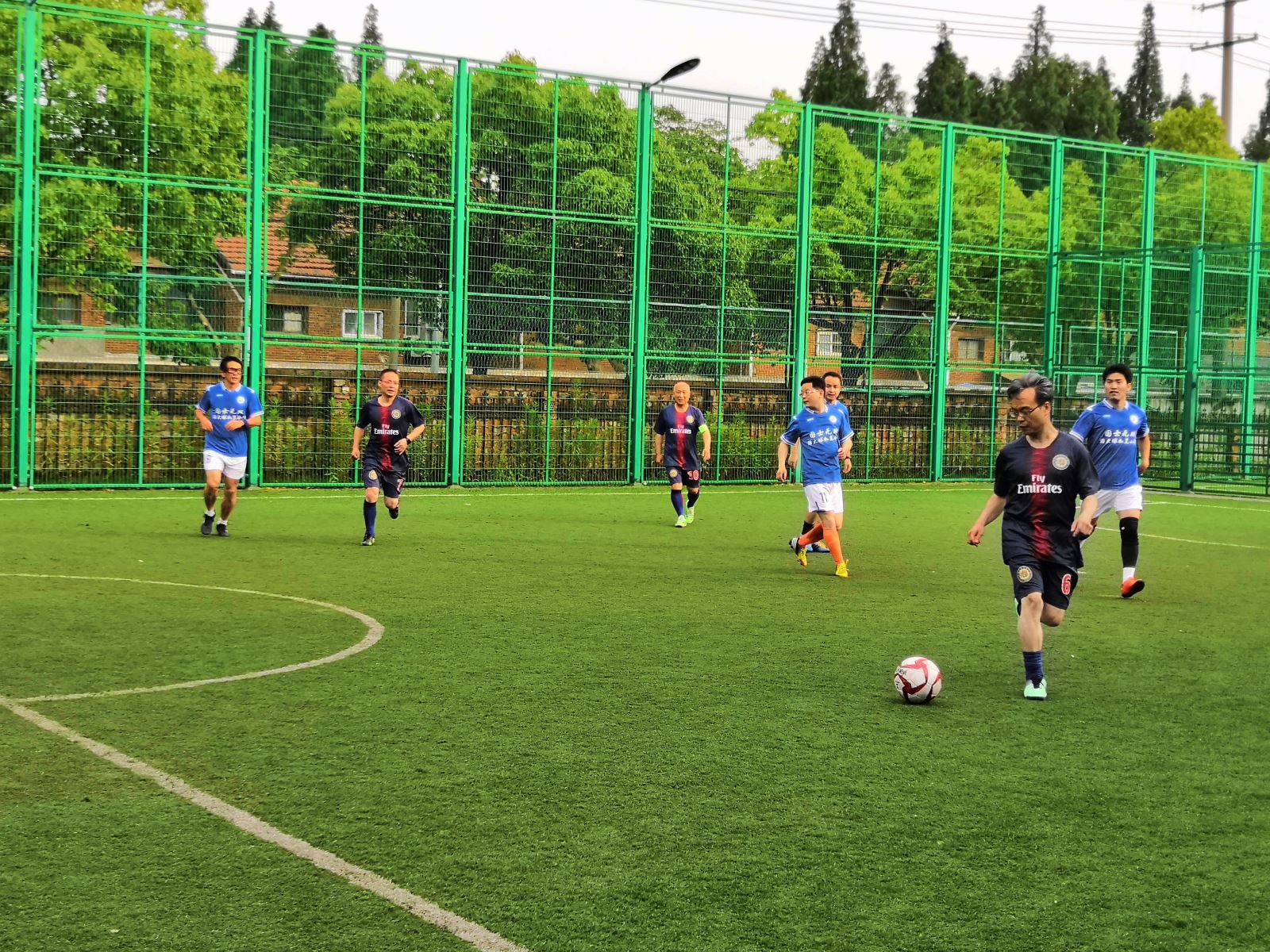 本次参加比赛的男子足球队是外院历史上鲜见的一支队伍。说其鲜见一来是因为校级的足球比赛很少,二来是由于球队的人员构成。此次的球队不仅有外院的中青年教师,还有一位绿荫老将---年已六旬的姜宝有老师以及日本外教山本幸正老师,可谓是一支老中青皆备、中外兼具的特殊队伍,既彰显了外院的才广,又昭示了外院的人奇。甲子岁不老,效力热情高。姜老师不仅宝刀不老,而且雄风依旧,不仅亲自上阵,还担当了球队的统领。山本老师一经动员,马上应征,虽非本籍,却是一样的为外院争光情怀。