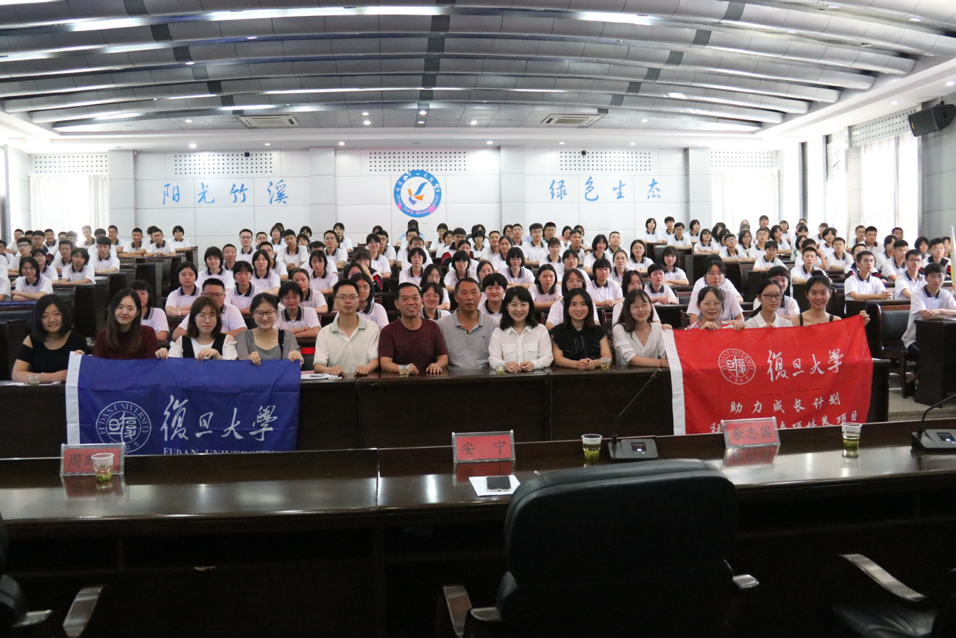 7月24日下午, “携手复旦•激情英语”夏令营开营仪式在竹溪一中黉学楼报告厅举行。竹溪县委组织部、竹溪一中领导和老师,支教队队员,夏令营全体营员齐聚一堂。
