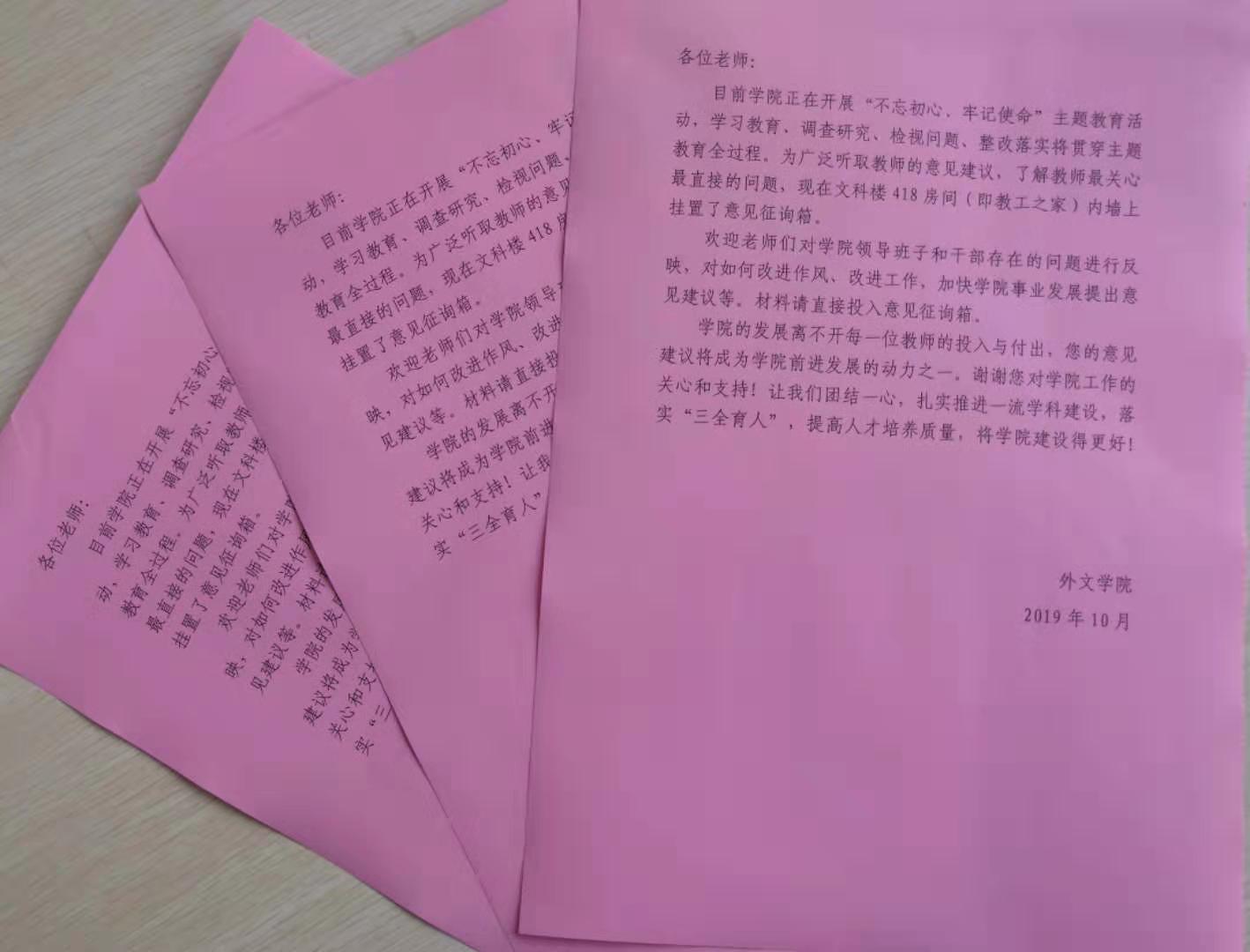 学院党政领导班子注重通过个别访谈、设立意见箱、发放征求意见表等多种方式,广泛听取对学院领导班子和干部存在问题的反映,对学院改进作风、改进工作的意见建议,对加快学院事业发展的意见建议等,并先后召开6场专题师生座谈会,聚焦事业发展,聚智全院师生,聚力破解难题,围绕教学科研、管理服务、基层党建、青教发展、人才培养等师生群众关心、关注、关切的问题,深入一线、了解需求、问计于民,扎实开展调查研究。