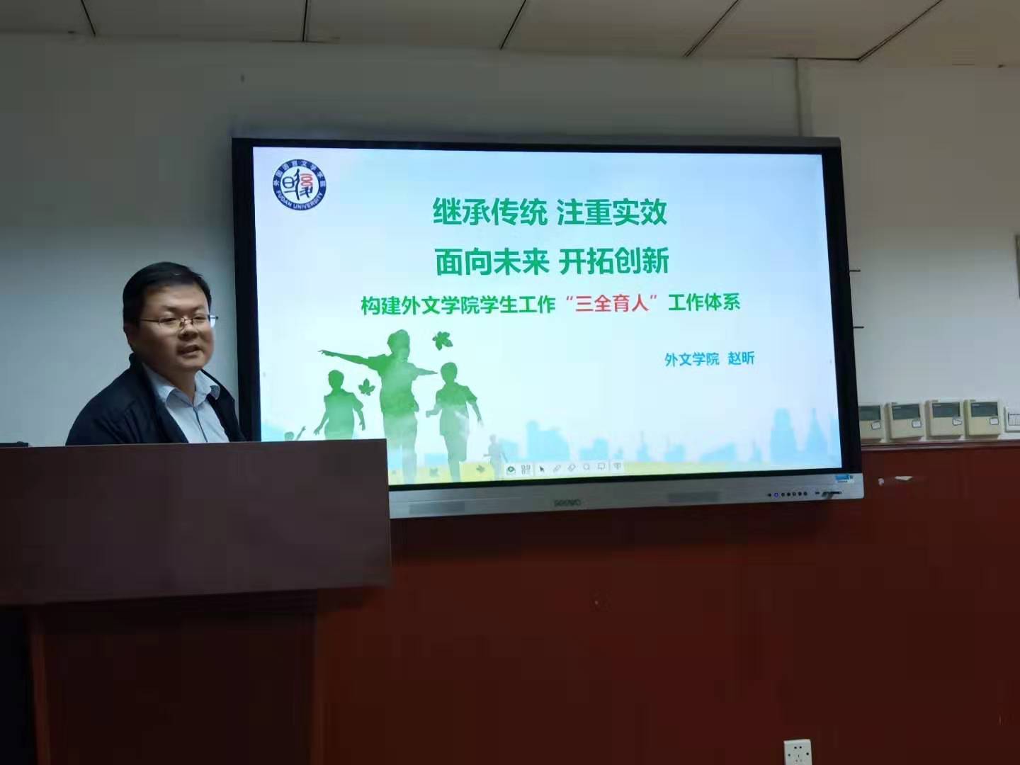 赵昕做了《继承传统,注重实效,面向未来,开拓创新——构建同人小说 学生工作“三全育人”工作体系》的汇报,他表示,要围绕立德树人根本任务,以队伍建设为基础、以学生党建为引领、以实践育人为抓手、以创新发展为驱动,统筹各方育人资源力量,激发全员育人主体活力,将思政工作贯通育人全过程,全方位覆盖育人空间场域,突出问题导向和改革创新,深入推进“三全育人”。