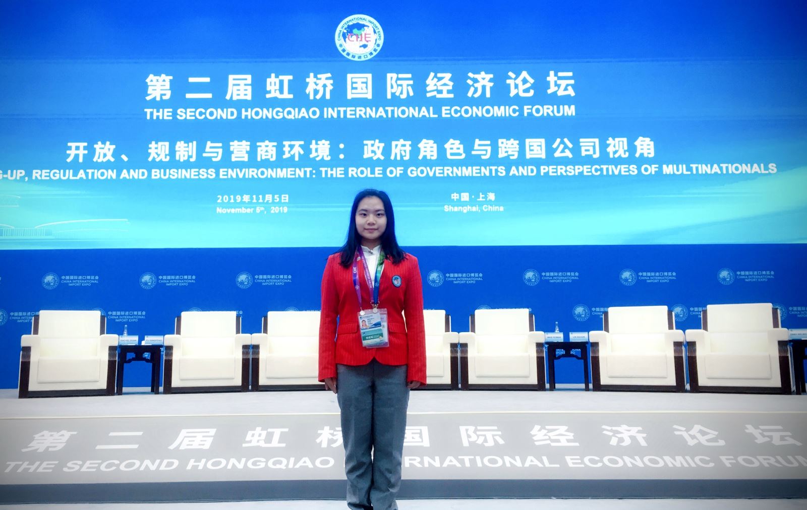 进博会志愿者的服务经历匆匆而过,但却永远是我心中闪着光的认真收藏的回忆。清晨天还未全亮就登车参与的培训、巡馆与上岗,馆内通明的灯火,夜空中点点闪烁的星子,以及遇见的亲戚的老师、和我一样满怀热忱的志愿者同伴,都为我的大学生涯记下了难以忘怀的一笔。在进博会志愿者服务的岗位上,我担任分论坛初咨询台的工作,这一工作也使我得以发挥自身语言能力,更因自身所做的小小贡献而感到自豪,我今后仍会因相似的机会与回忆而热情澎湃。