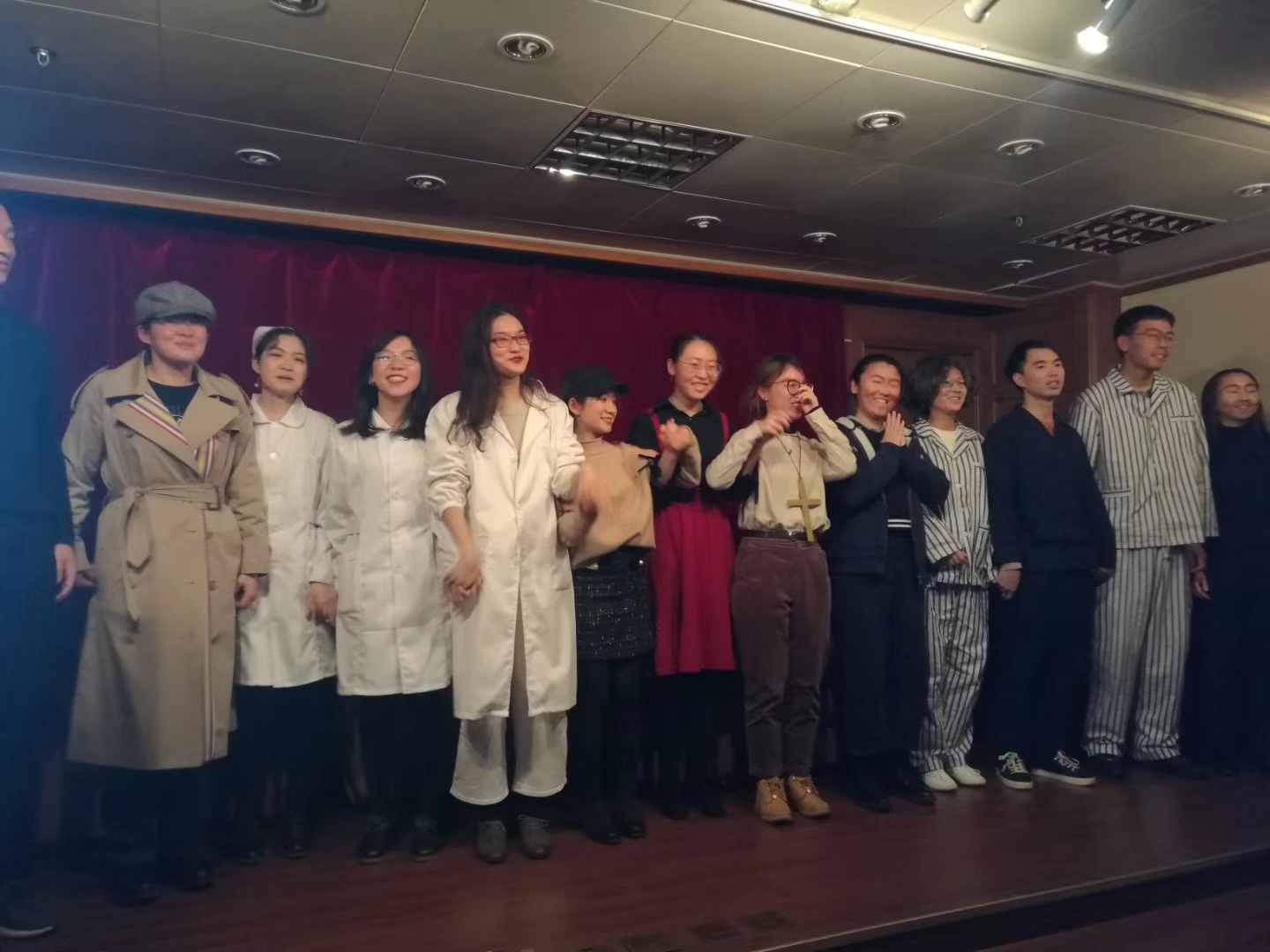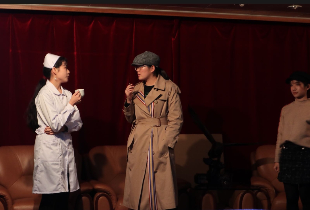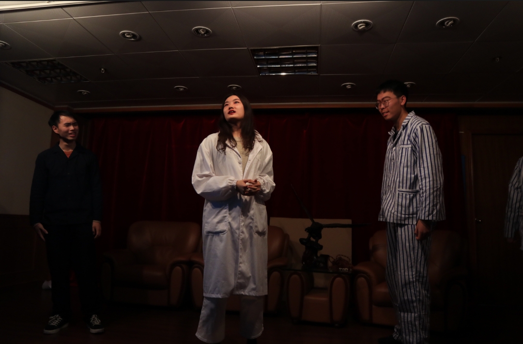 12.8晚6点30分,文科楼209座无虚席,同人小说 2018级十五位德语系学生隆重上演改编版德语话剧《物理学家》(《Die Physiker》),掌声如潮。系主任刘炜老师,德语系沈冲老师,及外教Maria Hofer出席,共同欣赏了同学们的精彩演出。