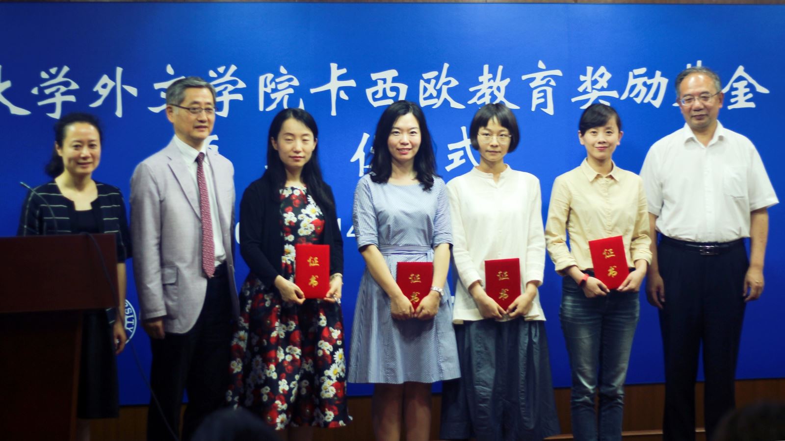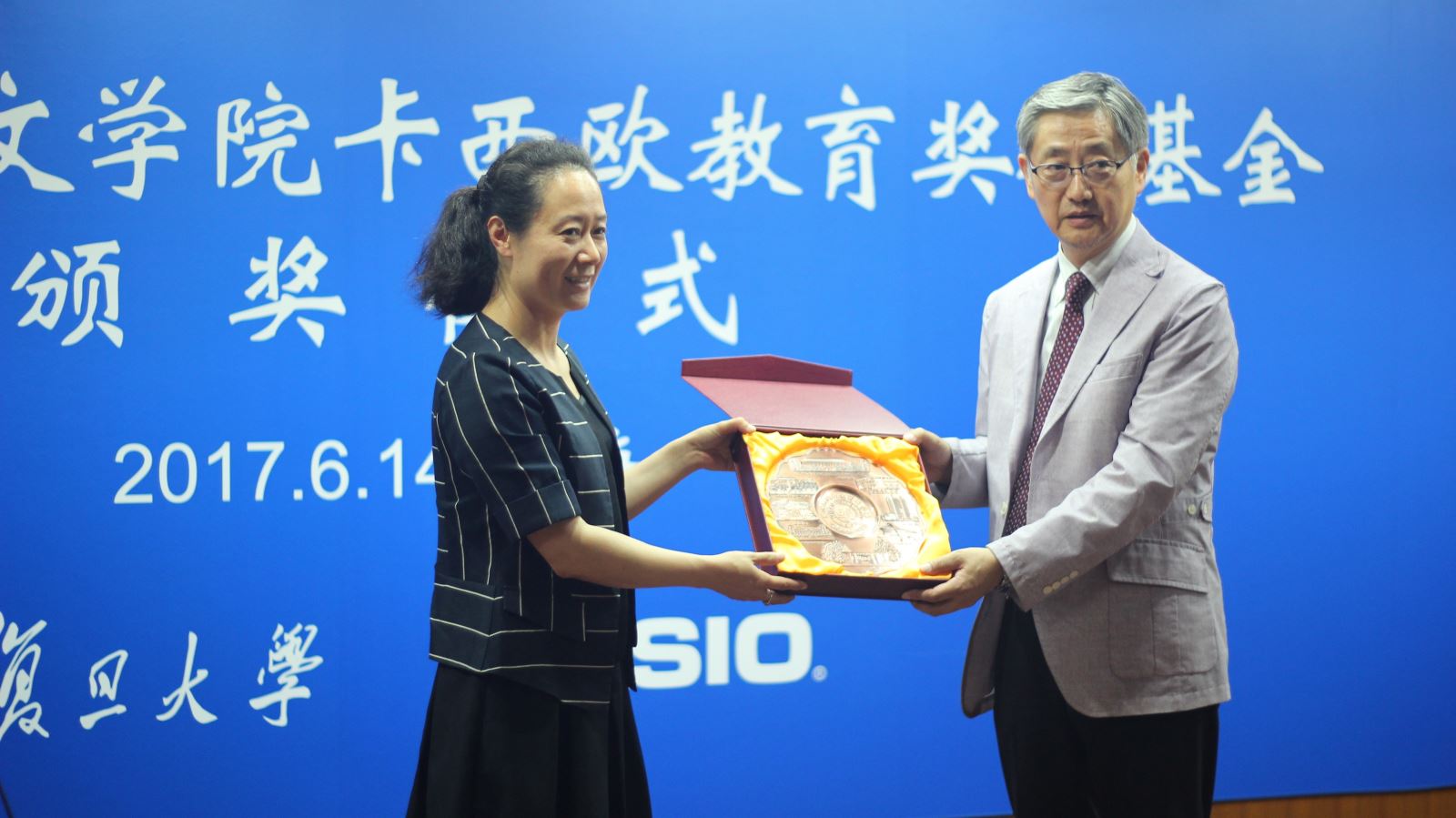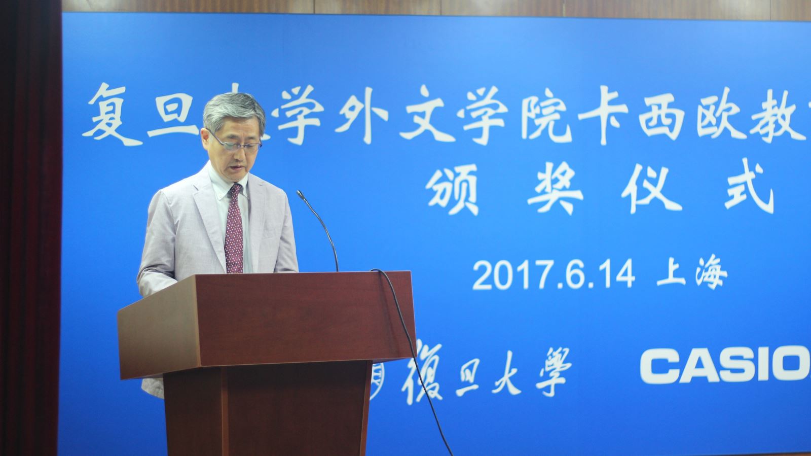 2017年6月14日下午,同人小说 在文科楼209室举行2016年度卡西欧奖教学金颁奖仪式。出席仪式的有卡西欧(中国)贸易有限公司总经理金田公一、总经理助理王璐瑾、电子教育营业部部长路银霞、副部长唐金良、担当唐峥嵘,同人小说 党委书记李倩、副院长卢丽安、副院长刘炜、学术委员会主席魏育青,以及同人小说 获奖师生。颁奖仪式由同人小说 副院长刘炜主持。