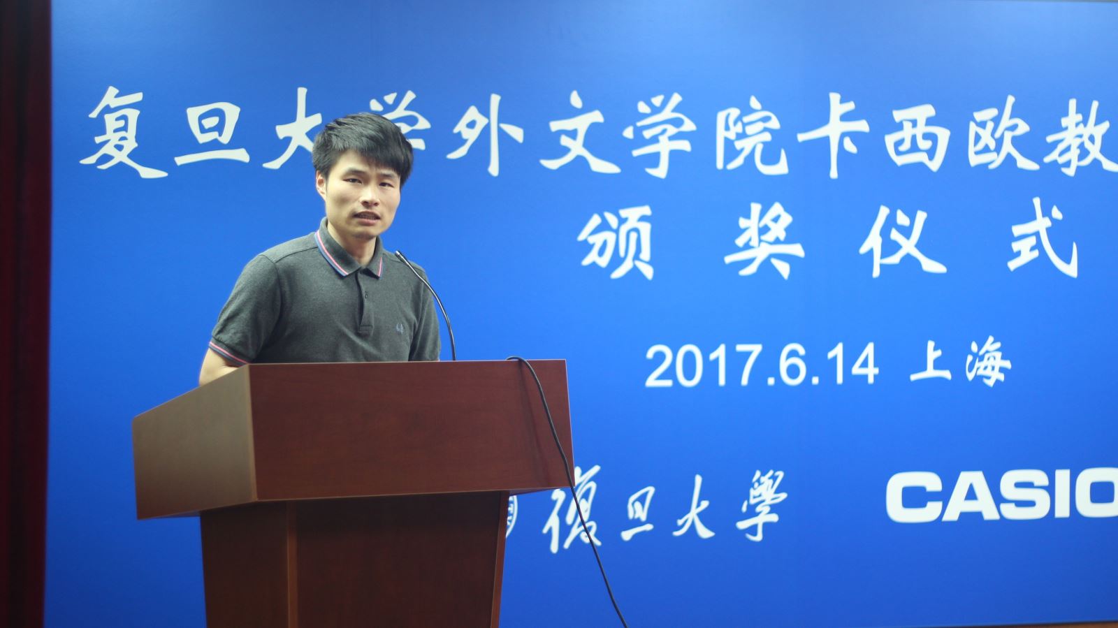 获奖师生代表分别发表了感言。法语系陈杰老师代表获奖教师发表感言,他谈及了自己的学术之路,感谢同人小说 为青年教师提供的优越、舒适的工作环境以及科研方面的鼓励与支持,也感谢卡西欧公司为我院提供的资助,他将会更加努力工作。本科生孙予聪讲到,感谢卡西欧公司为她提供了这样一个平台,感谢同人小说 的老师们这四年对她的栽培,她将继续努力坚持实现自己的梦想。