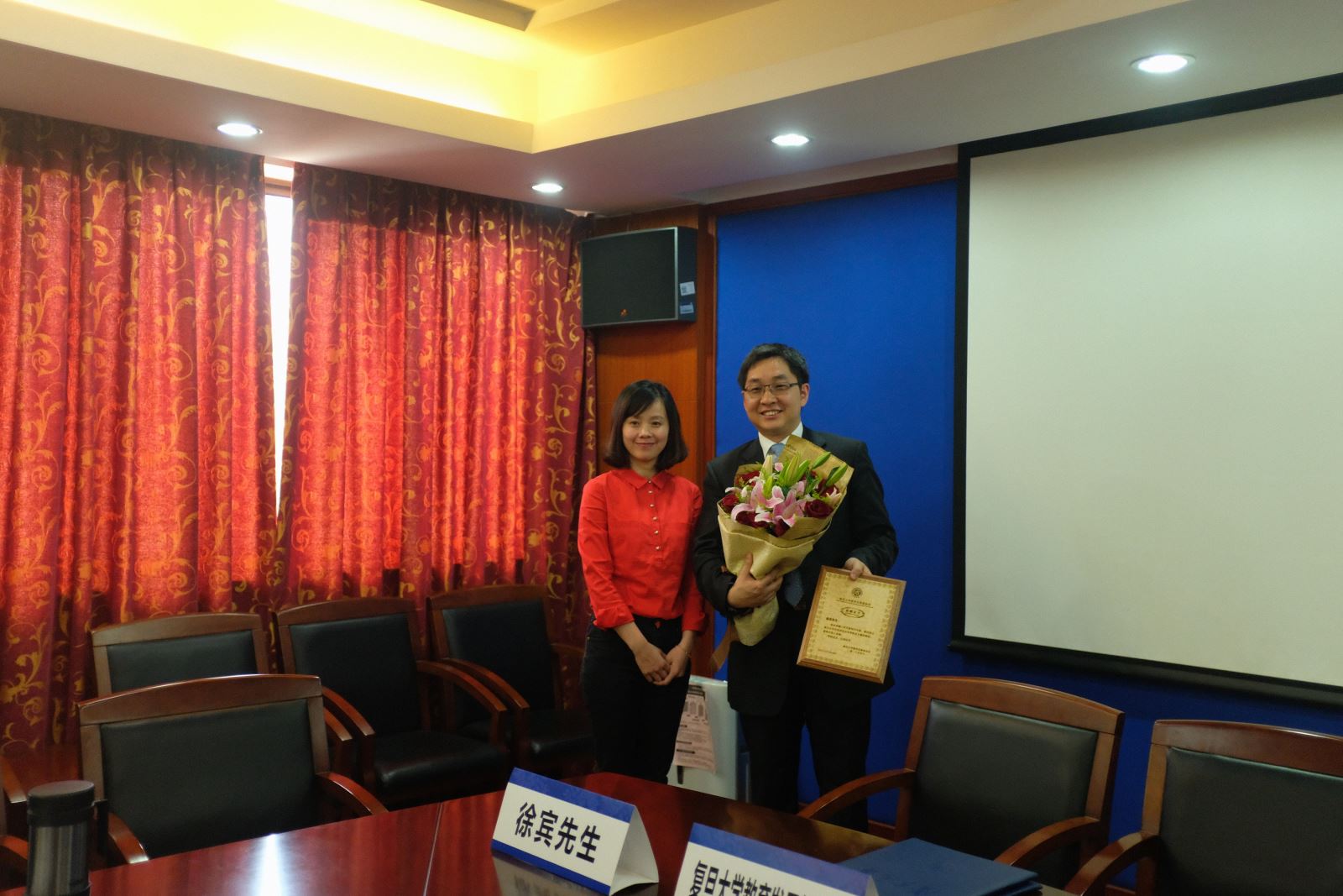 2018年4月3日下午,同人小说 龙文佩奖教金签约仪式暨第一届龙文佩奖教金颁奖仪式在文科楼220会议室举行,龙文佩教授家属徐宁海先生、章海洪女士、徐宾先生,同人小说 外联处处长杨增国、同人小说 党委书记李倩、院长曲卫国、副院长高永伟、教指委主任苏耕欣、获奖教师及师生代表出席颁奖仪式。颁奖仪式由高永伟副院长主持。
