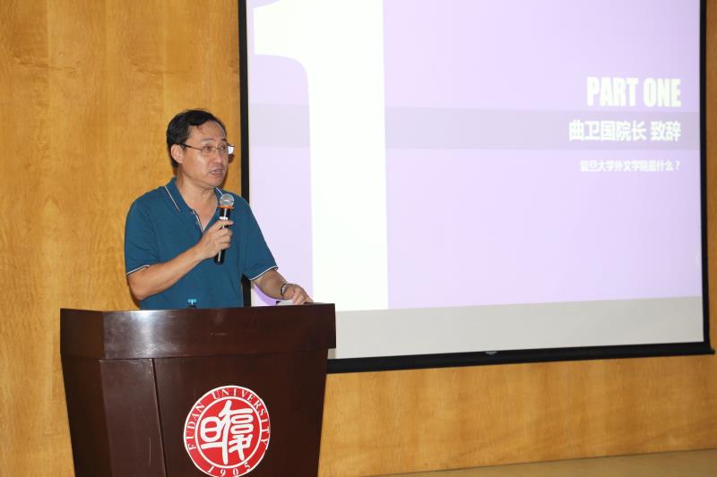 曲卫国院长发表了热情洋溢的讲话,对2018级新生的到来表示了诚挚的欢迎,曲院长希望新生在大学四年养成自主学习的习惯,同时通过掌握外语拓宽自己获得知识和信息的渠道,更好地培养自己独立思考的能力。