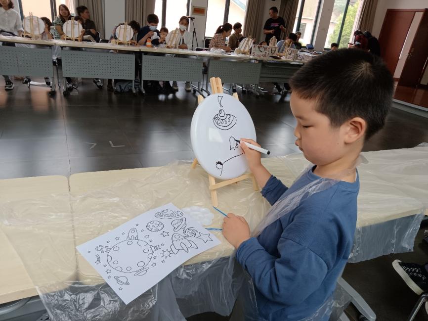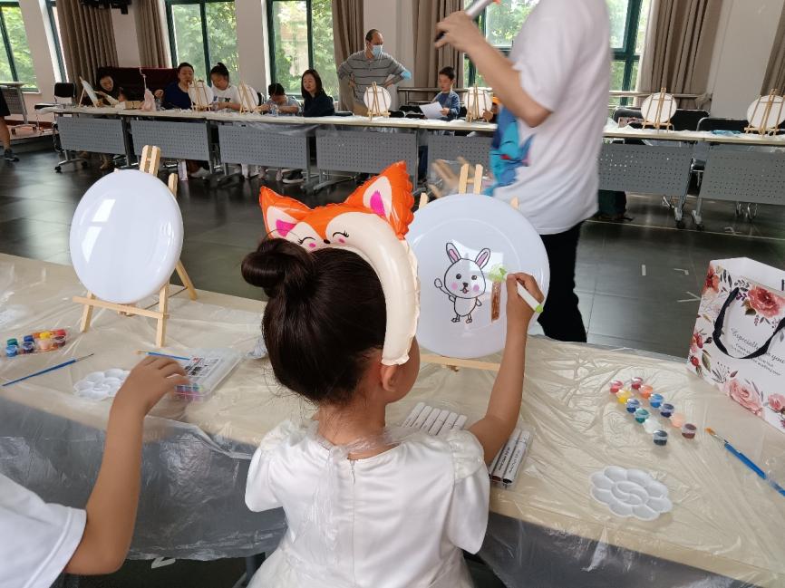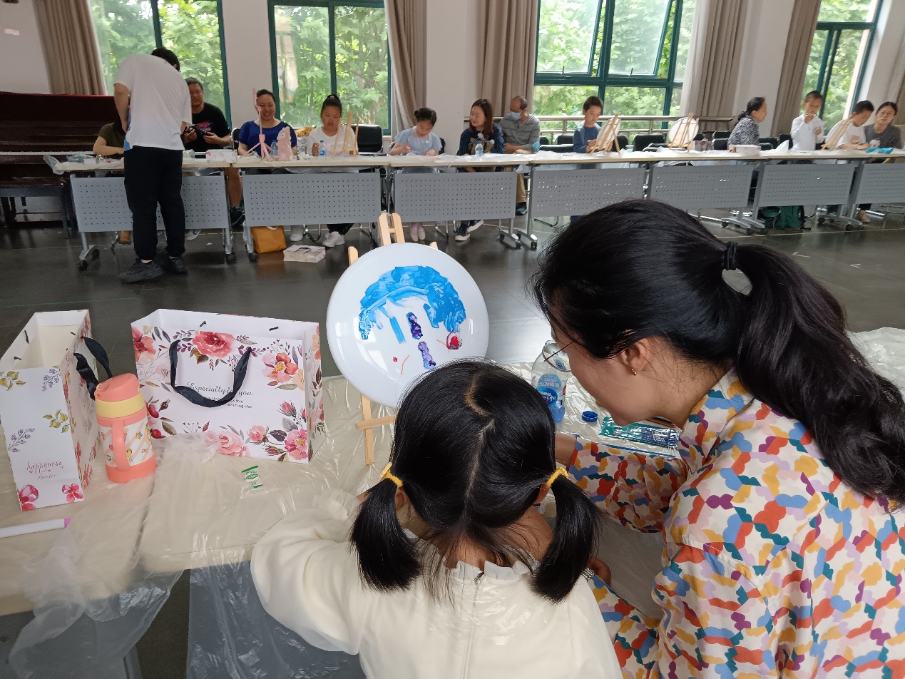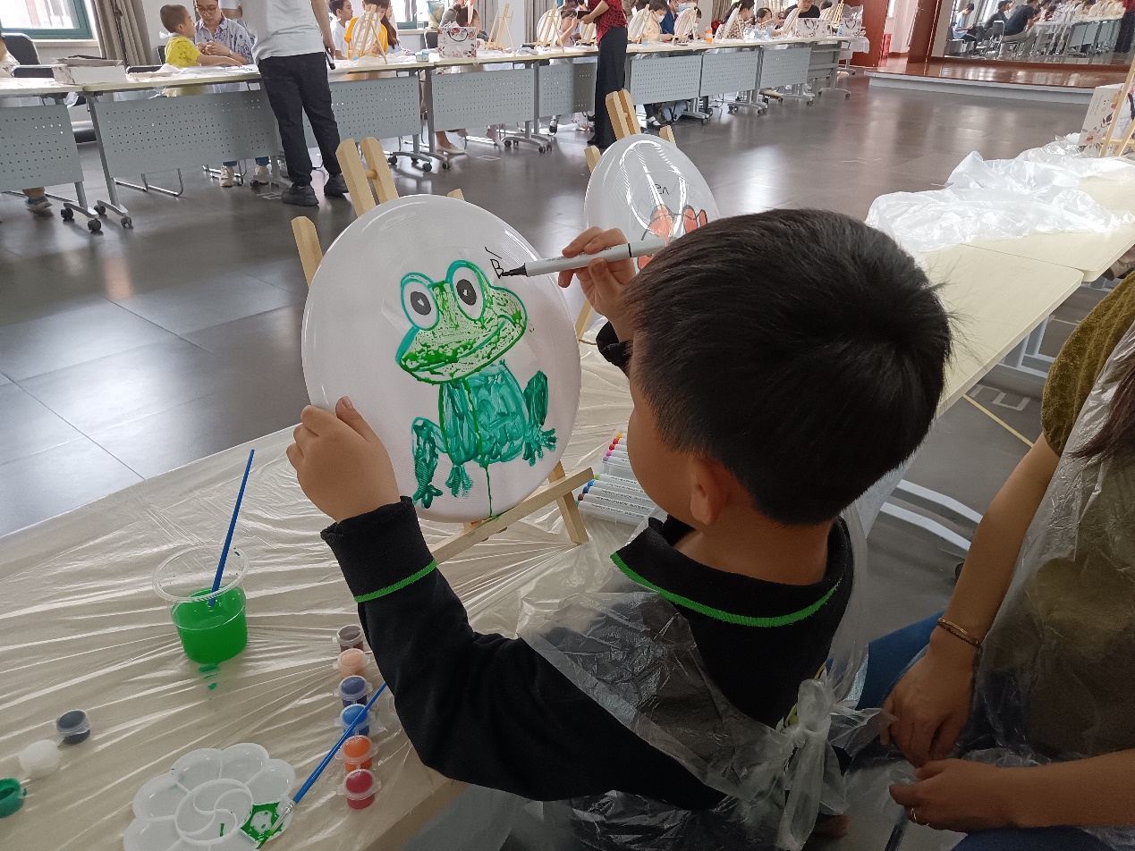 泡泡游戏结束后,孩子们进入了DIY环节:自绘飞碟画。在家长们的引导下,孩子们放飞想象的翅膀,舞笔弄彩,用稚嫩的小手描绘心中的蓝图,一幅幅充满童趣的油彩画跃然碟面上。孩子们的作品有的抽象,有的奔放,有的天真,有的粗朴,内容丰富多彩,主题百花齐放。