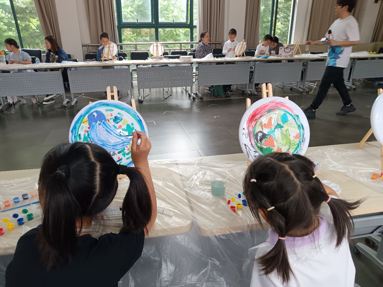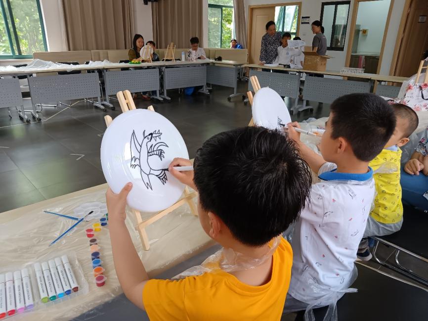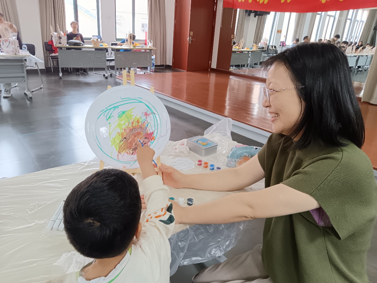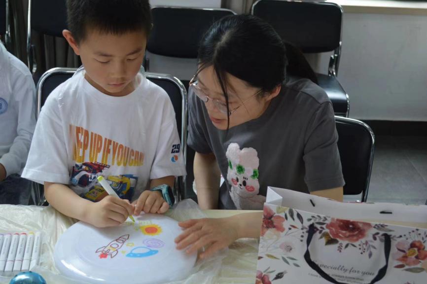 泡泡游戏结束后,孩子们进入了DIY环节:自绘飞碟画。在家长们的引导下,孩子们放飞想象的翅膀,舞笔弄彩,用稚嫩的小手描绘心中的蓝图,一幅幅充满童趣的油彩画跃然碟面上。孩子们的作品有的抽象,有的奔放,有的天真,有的粗朴,内容丰富多彩,主题百花齐放。